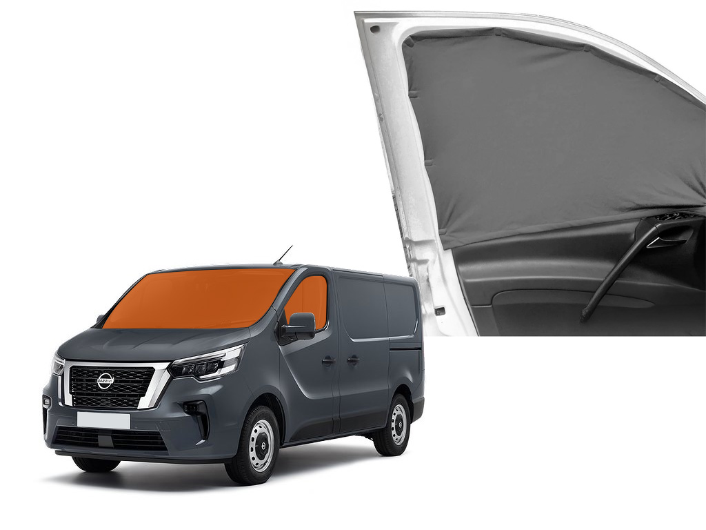 Blackout curtains made for Nissan Primastar from 2022 onwards. These curtains are designed to effectively reduce the amount of light entering the driver's cabin, thereby providing a more comfortable environment in your vehicle.