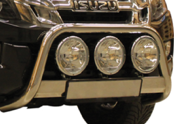 Stylish low bull bar made of stainless steel with high gloss polished surface treatment, for a shiny finish! The arch with its A-design is model-adapted for Isuzu D-Max from 2012-.