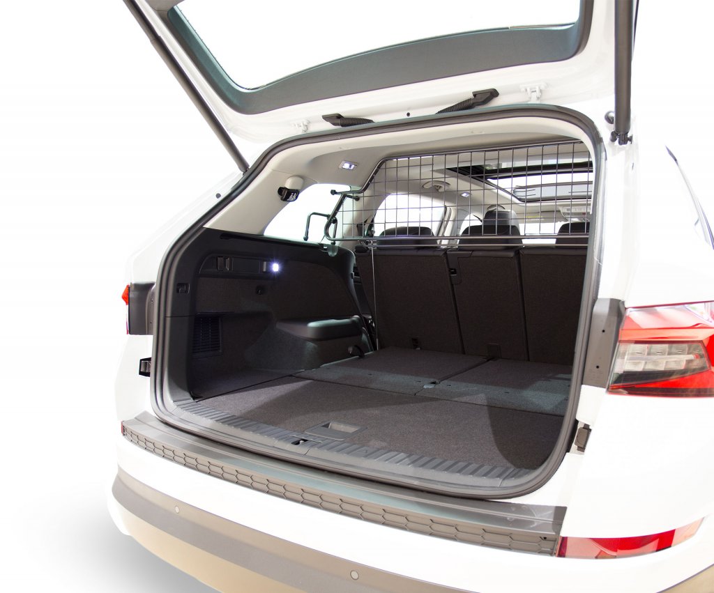 The Skoda Kodiaq Dog Guard from 2017-2023 is both practical and safe. The Dog Guard is model-adapted for optimal fit and function. In the drop-down list, you can choose whether you only want the Dog Guard or whether you also want the grid together with a divider.