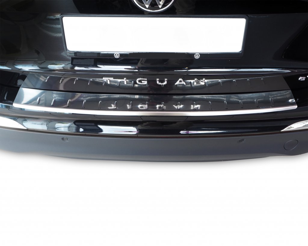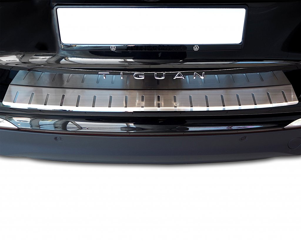 Protect the rear bumper of your Volkswagen Tiguan with an elegant and durable Stainless Steel bumper protector. This accessory is designed to combine practical function with a stylish appearance, while effectively protecting the car from scratches, bumps, and wear during loading and unloading.