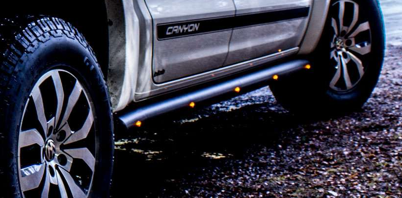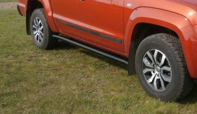 You can find similar products hereStylish and protected side bars in polished stainless steel painted with black powder coating, specifically designed for VW Amarok from 2011-. Create a personalized look on your Amarok with side arches, while protecting the otherwise exposed sills.