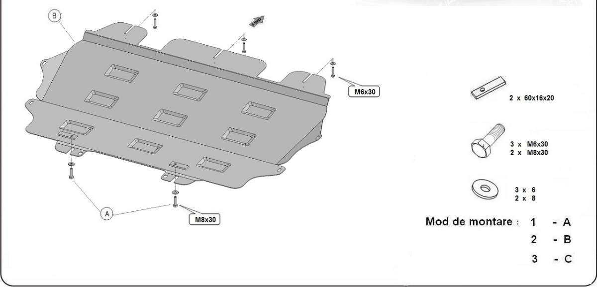 Installation is very easy, as the Citroen C4 Picasso Skid Plate is mounted in the original mounting points on your car. The installation takes place without any damage to your car and can be restored to original design if desired.