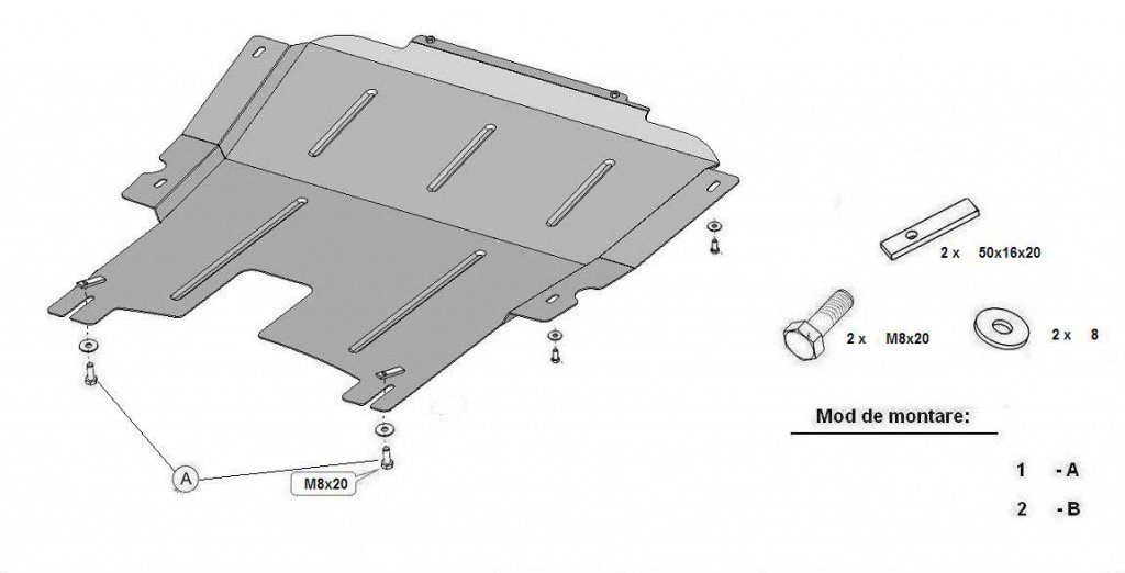 Dacia Dokker Skid Plate from 2012- is designed to protect the engine and gearbox from damage. Installation is very easy, as the Dacia Dokker Skid Plate is mounted in the original mounting points on your car. The installation is done without any damage to your car and can be restored to original design if desired.