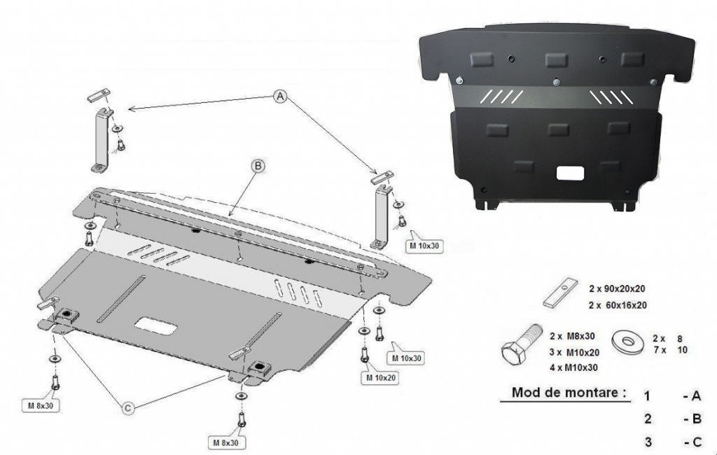 This skid plate Hyundai Santa Fe is supplied as a complete kit including assembly parts and detailed installation instructions.