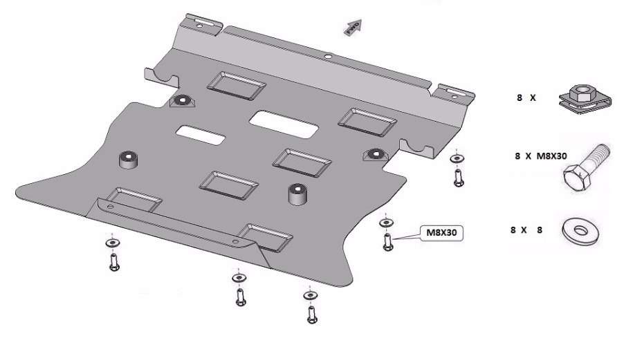 Installation is easily done in the original mounting points without damage to your car. The Skid Plate is available in steel that is painted black.