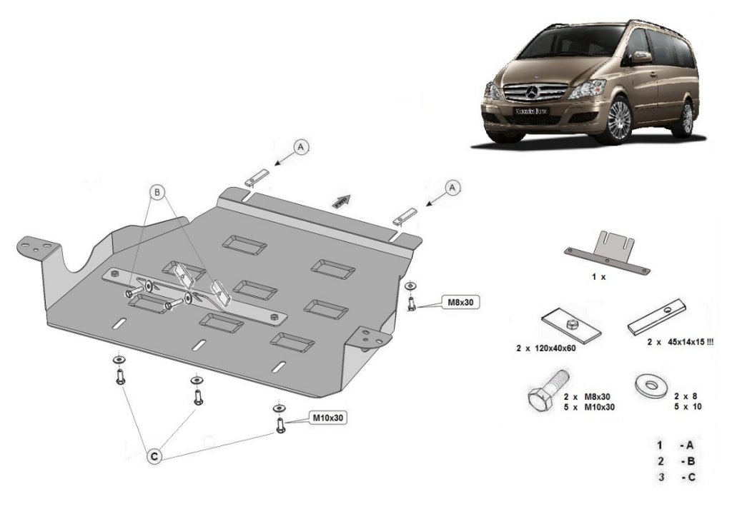 Functional Skid Plates and engine protection for Mercedes-Benz Vito & Viano 2003-2014. The Skid Plates are designed to protect the engine, gearbox and distribution box from damage.
