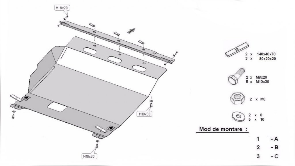 Designed to protect the engine, gearbox and radiator from damage. Made of 2 mm steel that is painted black for good rust protection.