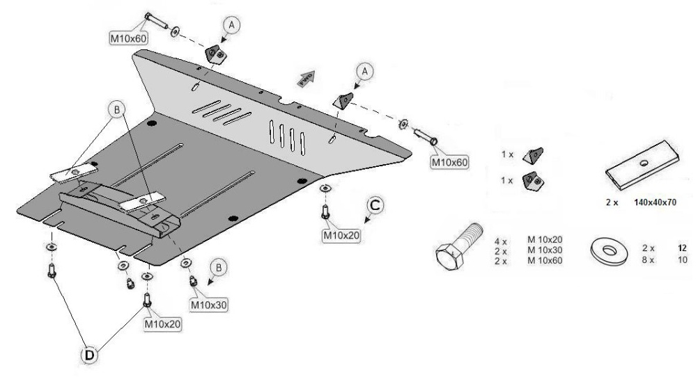 Installation is easily done in original mounting points without damage to your car. The Skid Plate is available in steel that is painted black. In order for assembly to be possible, the Skid Plate for engine is required.