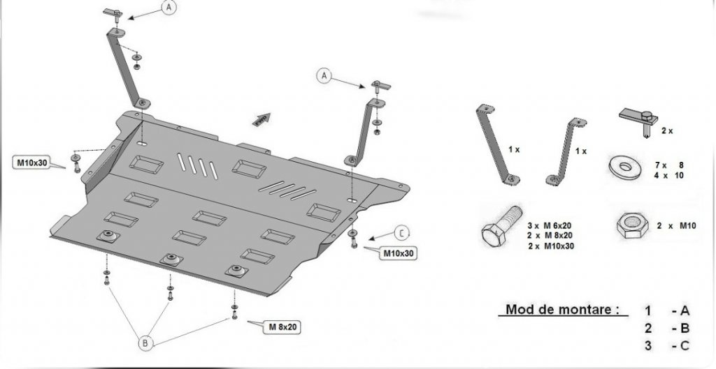 Skid Plate Skoda Kamiq from 2020- is designed to protect the engine, gearbox, radiator, bumper & particulate filter from damage. Installation is very easy, as the Skoda Kamiq Skid Plate is mounted in the original mounting points on your car. The installation is done without any damage to your car and can be restored to original design if desired.
