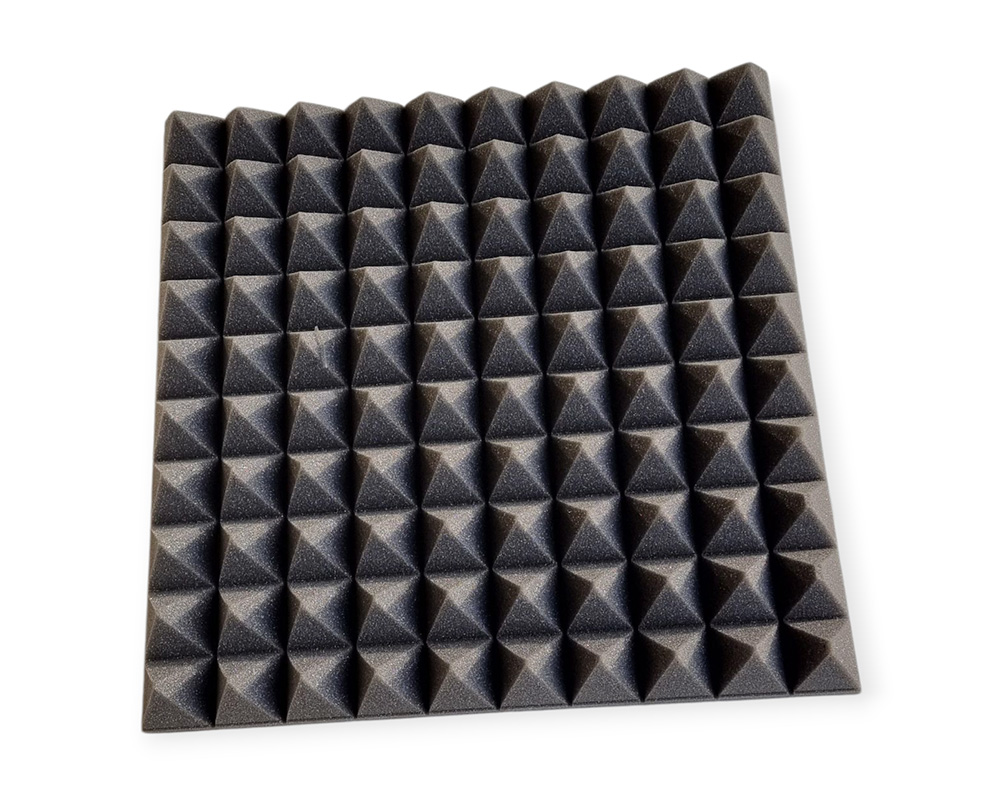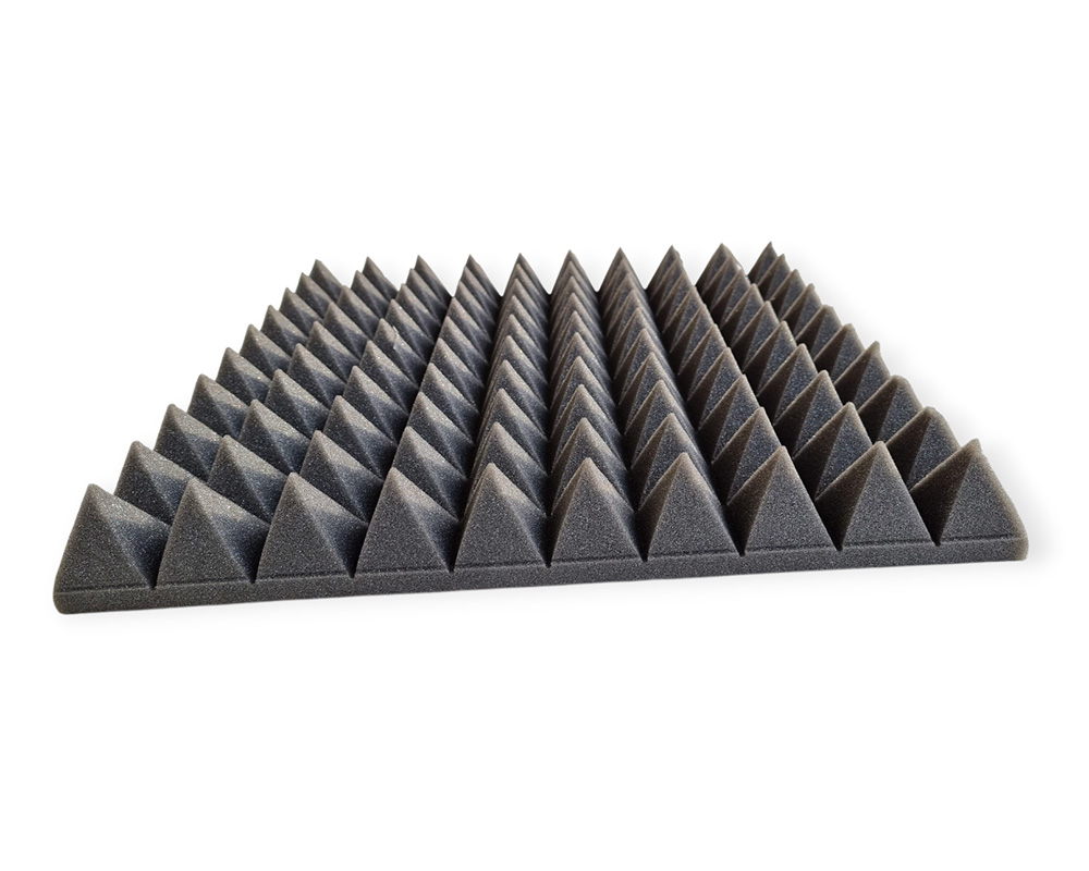 This sound absorbing panel is manufactured from 100% polyurethane foam with semi-open cell properties, making it highly suitable for effective sound absorption, especially in medium to high frequency ranges. The pyramid-shaped surface increases the total absorption area of the panel, helping to improve sound diffusion and reduce unwanted reflections. The practical self-adhesive backing makes installation quick and convenient on clean, dry and smooth surfaces without the need for additional glue or complicated fasteners.