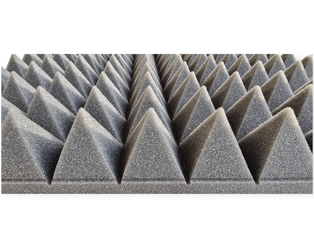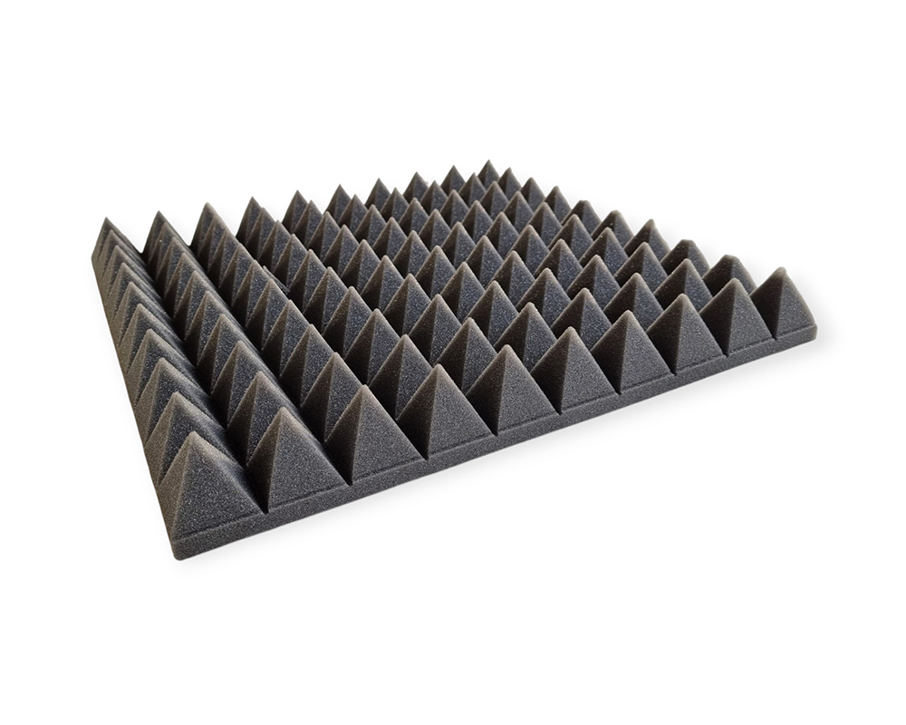 This sound absorbing panel is manufactured from 100% polyurethane foam with semi-open cell properties, making it highly suitable for effective sound absorption, especially in medium to high frequency ranges. The pyramid-shaped surface increases the overall surface area of the panel, helping to improve sound diffusion and absorption. This makes the panel a cost-effective and flexible solution for improving acoustics in both compact and larger spaces.