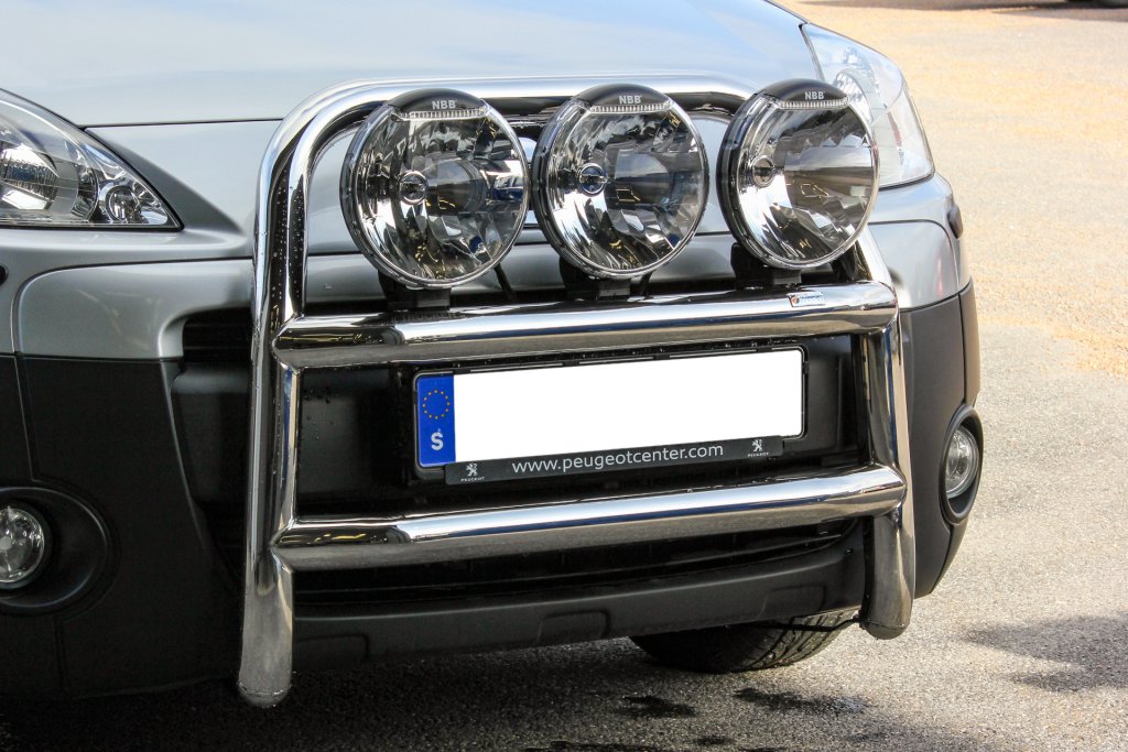 The Citroen Berlingo bull bar has space for three full-size auxiliary lights (235 mm). The attachment points for the auxiliary lights are recessed into the bull bar tube and allow you to adjust the depth. The bar together with the auxiliary lights gives your car a proper high beam, and a great impression from the front!