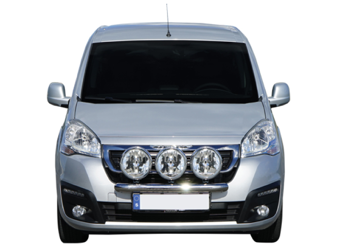 The Citroen Berlingo auxiliary light bracket has space for three full-size auxiliary lights (235 mm). The attachment points for the auxiliary lights are recessed into the arch tube and allow you to adjust the depth. The bracket is also height adjustable to provide freedom of choice in placement. Our Citroen Berlingo auxiliary light mount is designed to sit snugly against the front of the car, while being adjustable for placement to suit your taste.
