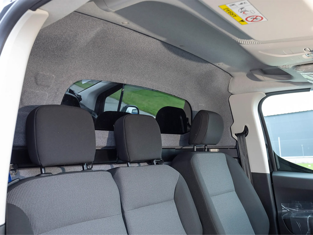 Comfort partition wall Citroen Berlingo from 2018 and newer is designed to replace the factory-installed partition. By providing more space in the cabin, it improves both driving position and comfort, while reducing the noise level in the cabin for a quieter and more pleasant working environment.