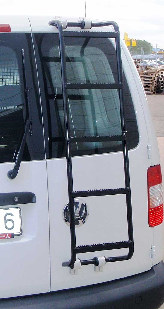 You can find similar products hereUniversal roof ladder for mounting on the rear door/tailgate, for all types of vans and other work vehicles. Installation is done by drilling holes in the tailgate/back door.