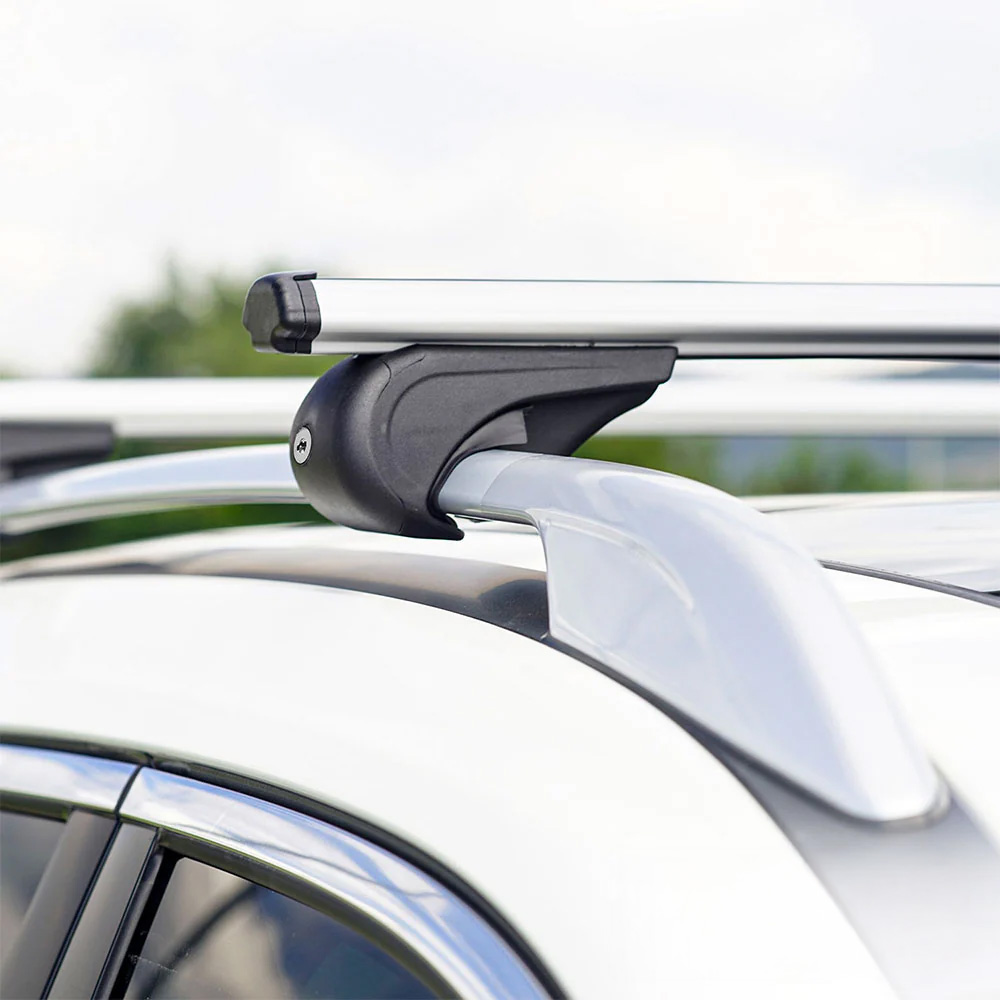 - The installation of these aluminium roof rails is easy with the accompanying foot kit that clamps around the car's existing roof rails.