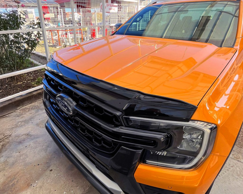 - The installation of bonnet guard Ford Ranger is designed to be completely non-invasive; no holes are drilled in the bonnet. Felt-lined clips are fitted along the front edge of the Bonnet guard; then the Bonnet guard is screwed into these. The screw head is covered by an elegant cover made of the same material, which covers all the windows and gives a perfect and uniform look.