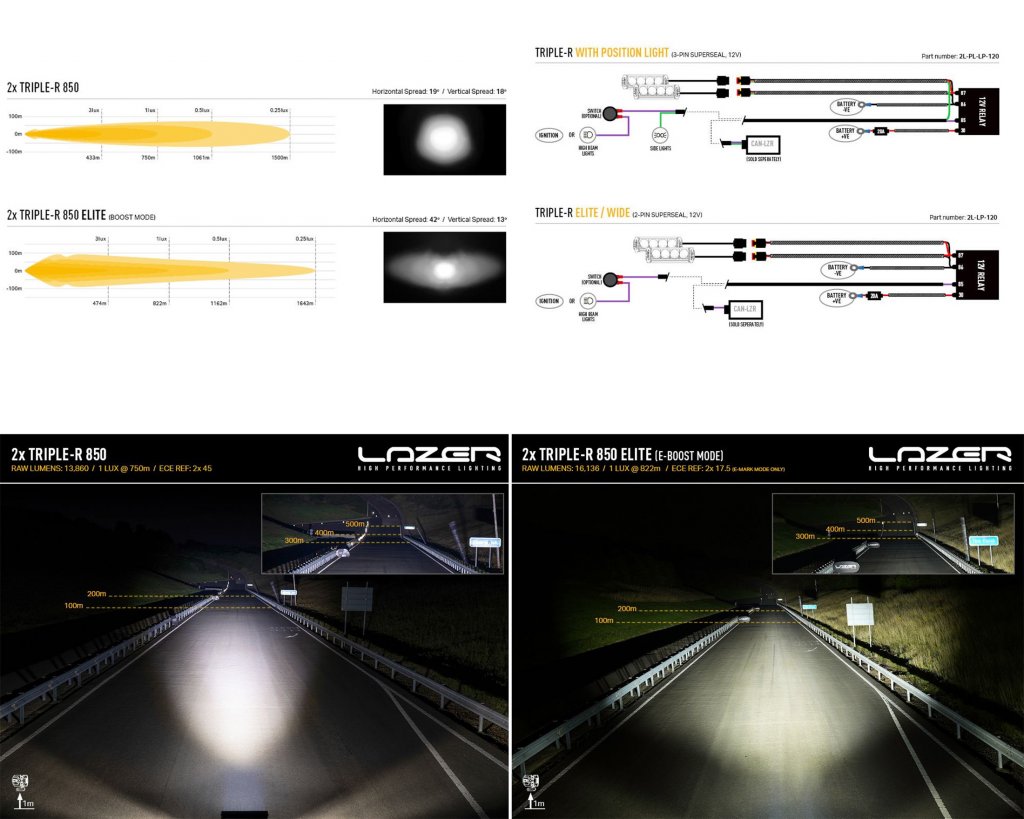 Complete extra light package Lazer Ford Ranger containing model-specific 3D printed mounting parts together with relay kit and Lazer ramps Triple-R 850. You choose whether you want the Lazer Triple-R 850, or the Elite model for longer range and increased power.