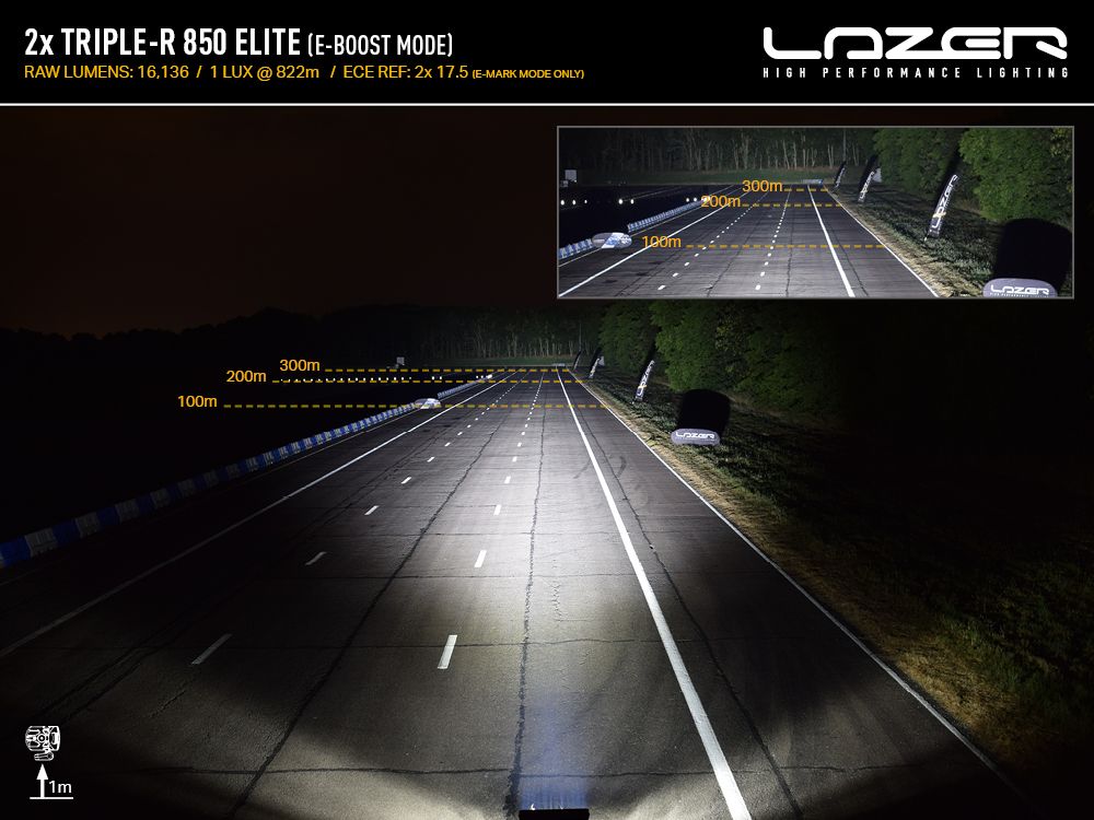 Complete extra light package Lazer Ford Ranger containing model-specific 3D printed mounting parts together with relay kit and Lazer ramps Triple-R 850. You choose whether you want the Lazer Triple-R 850, or the Elite model for longer range and increased power.