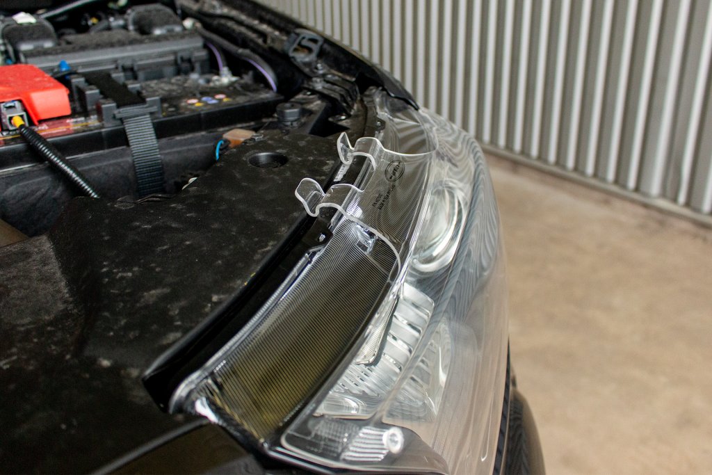 Mounted with clips, without any damage to the headlights or car. The car can be easily restored to original.