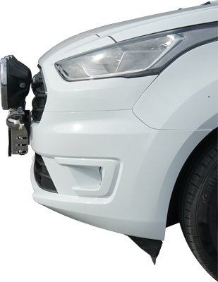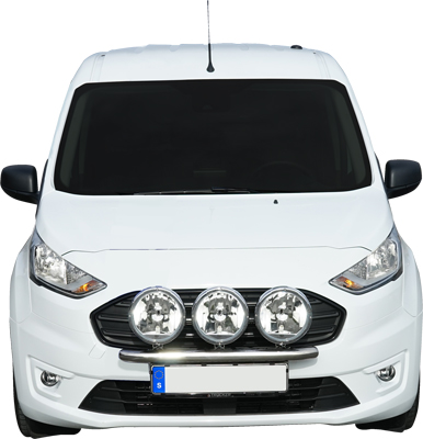 The auxiliary light bracket has space for three full-size auxiliary lights (225 mm). The attachment points for the auxiliary lights are recessed into the bow tube and allow you to adjust the depth. The bracket is also height adjustable to provide freedom of choice in placement. Our Ford Transit Connect auxiliary light mount is designed to sit snugly against the front of the car, while being adjustable for placement to suit your taste.