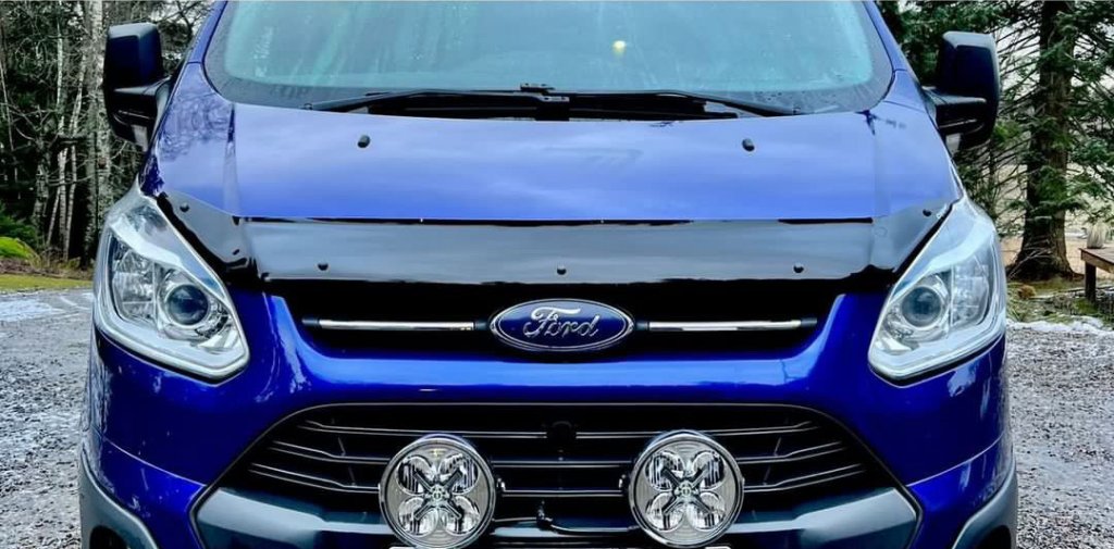 - The installation of bonnet guard Ford Transit Custom is designed to be completely non-invasive; no holes are drilled in the bonnet. Felt-lined clips are fitted along the front edge of the Bonnet guard; then the Bonnet guard is screwed into these. The screw head is covered by an elegant cover made of the same material, which covers all the windows and gives a perfect and uniform look.