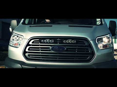 Complete auxiliary light kit containing everything you need for installation in the upper grill of Ford Transit from 2014-2019.
