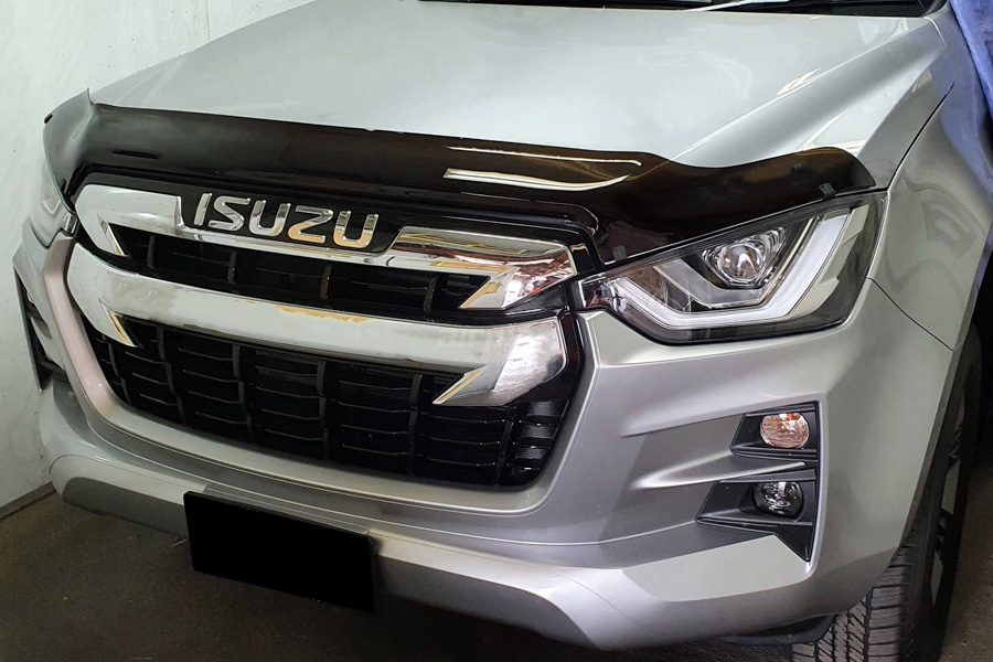 - The installation is completely non-invasive, where the Isuzu D-Max Bonnet guard is mounted in the car's existing attachment points under the hood. The Bonnet guard is mounted with expander clips under the bonnet. At the outer edges above the headlights, matching W-clips in impact-resistant plastic are used, which are clamped around the Bonnet guard and bonnet. The bonnet is protected by a transparent protective plastic that is fitted before the W-clips.