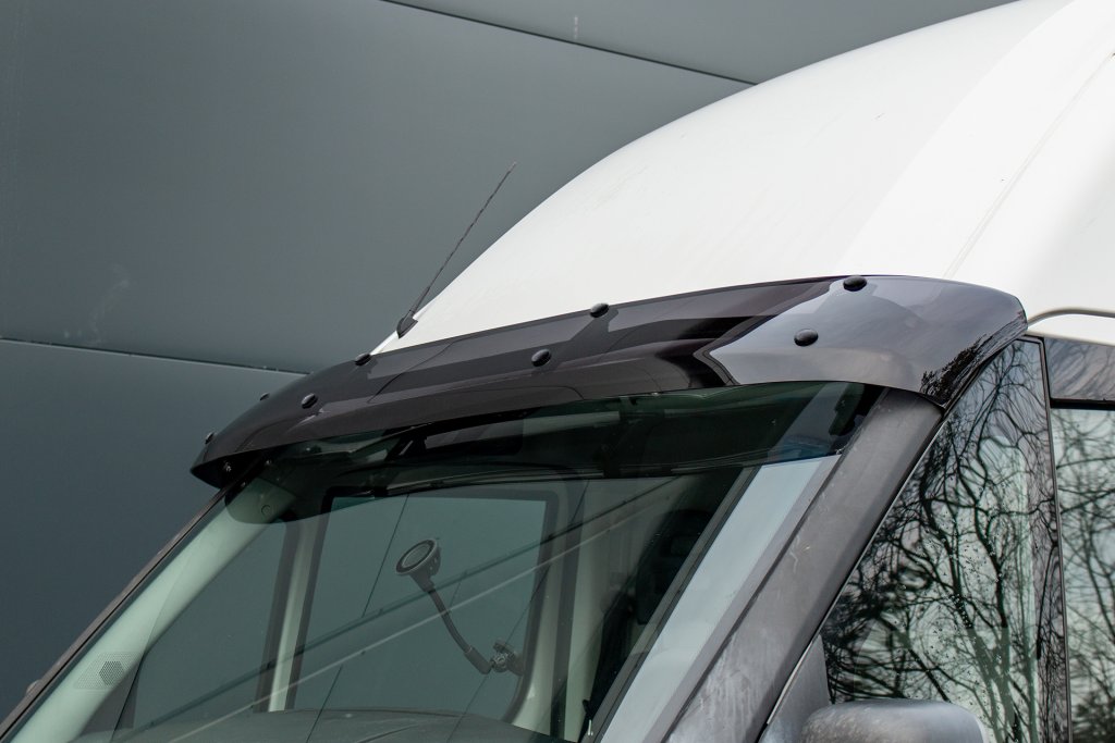 Give your Iveco Daily a stylish upgrade while fighting the sun's strong rays and glare. This aerodynamically shaped sun visor is made of solid, high-gloss black ABS plastic and is securely mounted with powder-coated steel parts in the car's A-pillars. The result is a complete solution that improves both comfort and the design of your car.