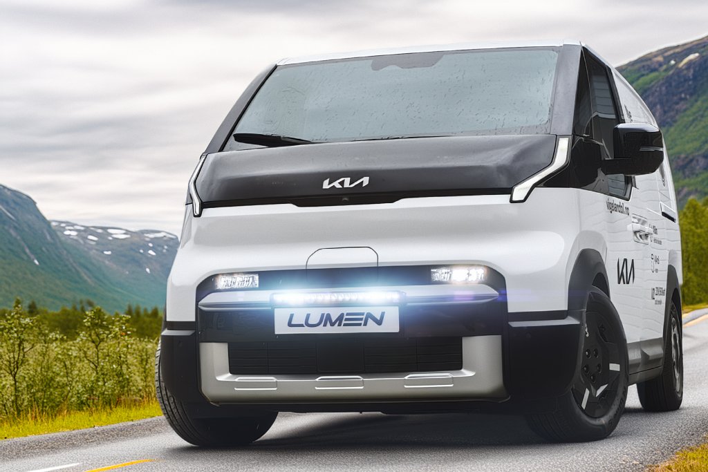 Maximize your visibility with an LED Light Bar Kit for Kia PV5 Cargo from 2025-. The Lumen Helios CS20 Slim delivers 21,352 lumens in a discreet, curved design for perfect mounting.