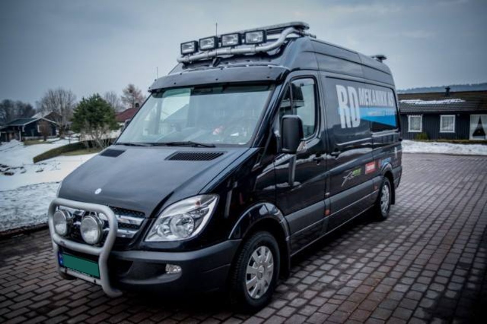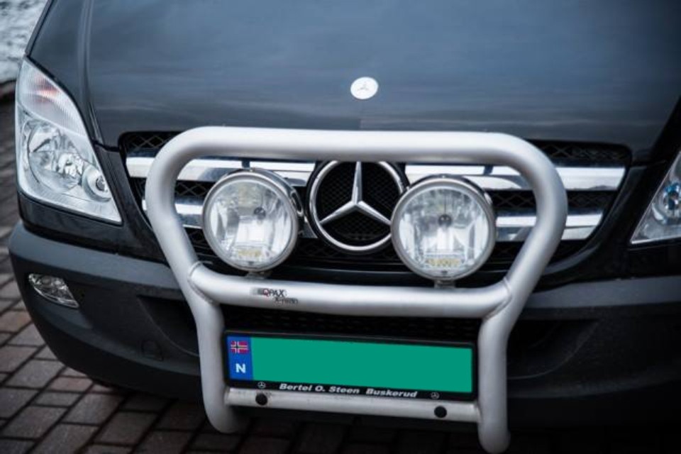 You can find similar products hereStylish functional bull bar made of aluminium, designed for Mercedes-Benz Sprinter from 2006-2012. The surface treatment is natural anodized, for a silver matte finish. Fixed attachment points for mounting 2 extra lights are available, for those who want a proper high beam!