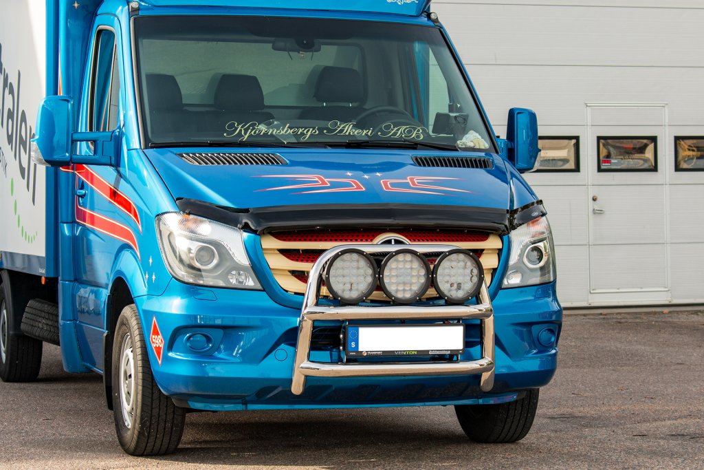- Installation is completely non-invasive, with the Mercedes Sprinter Bonnet guard being fitted to the vehicle's existing attachment points under the bonnet. The Bonnet guard is mounted with expander clips under the bonnet. At the outer edges above the headlights, matching W-clips made of impact-resistant plastic are used, which are clamped around the Bonnet guard and bonnet. The bonnet is protected by a transparent protective plastic that is fitted before the W-clips.
