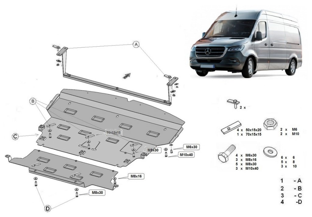 Skid Plate for Mercedes-Benz Sprinter from 2018-. Designed to protect the oil pan on the engine, radiator and bumper.