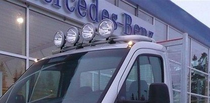 Stylish front roof bar made of aluminum, model-adapted to Mercedes-Benz Sprinter H1 with single cab. Perfect for those who need, for example, work lights, extra lights or warning lights for your car! The surface treatment is natural anodized, for a silver matte finish.