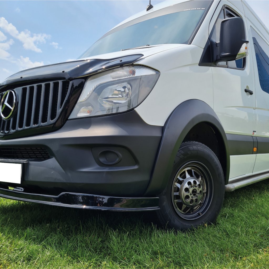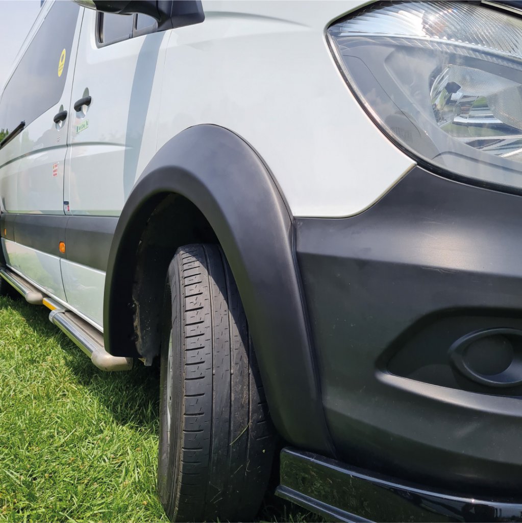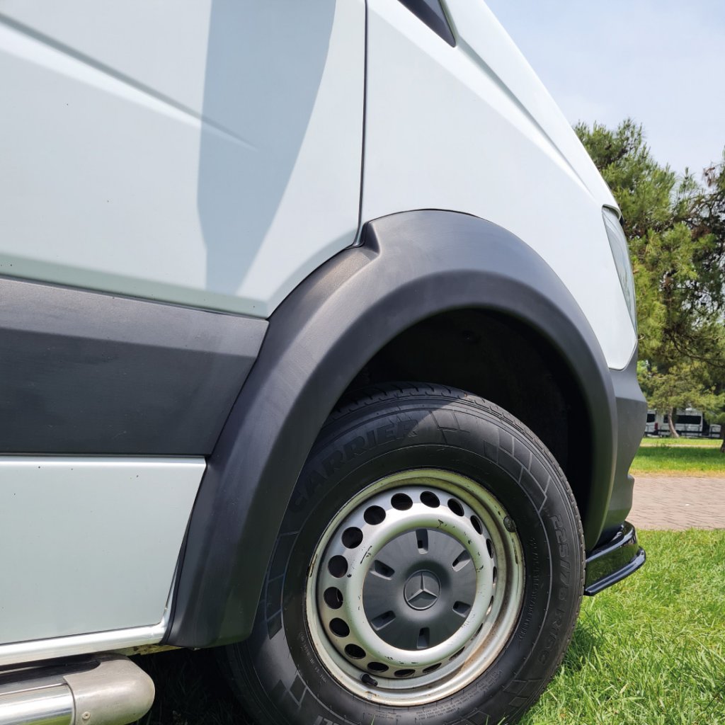 Stylish Fender Flaress Mercedes Sprinter from 2013-2018. Available in two variants, a slim model where the screen edge is covered by the Fender Flares and the Jumbo variant, which becomes really wide and stylish Fender Flaress Mercedes Sprinter.