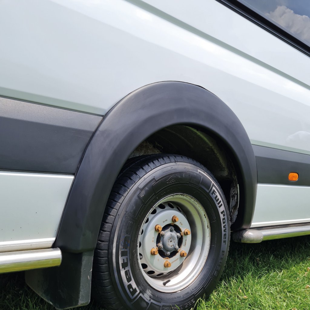 The Mercedes Sprinter fender flares are supplied in a matt black paintable finish and in a complete kit for the whole car.
