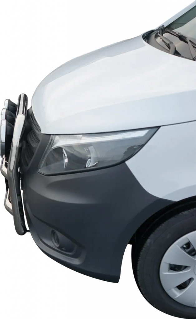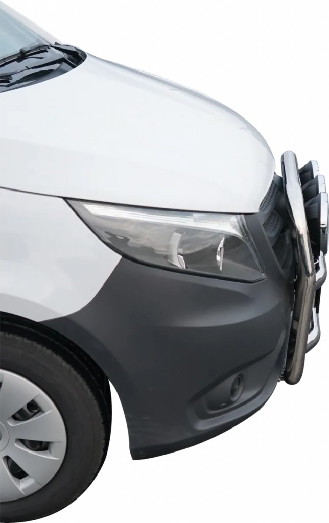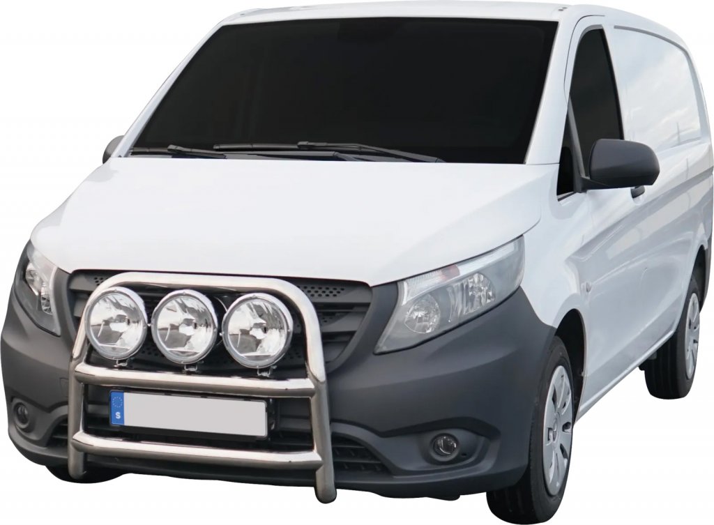 You can find similar products hereLarge and tough bull bar designed for Mercedes-Benz Vito from 2014-2019. Bull bar made of stainless steel with smooth welded joints. The following finishes are available for the frame:
