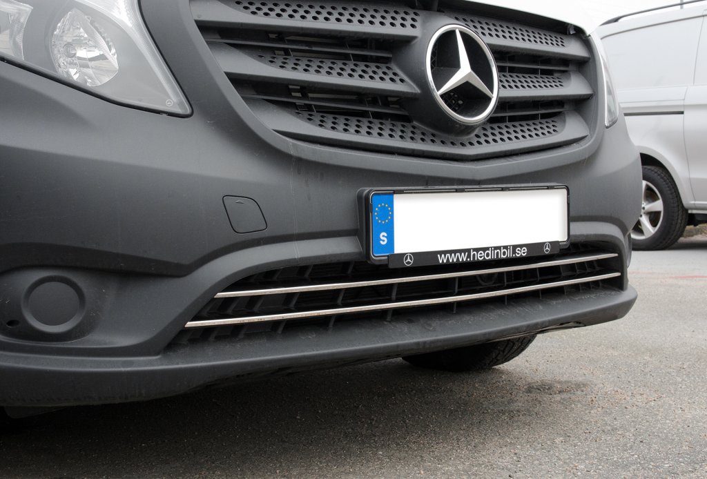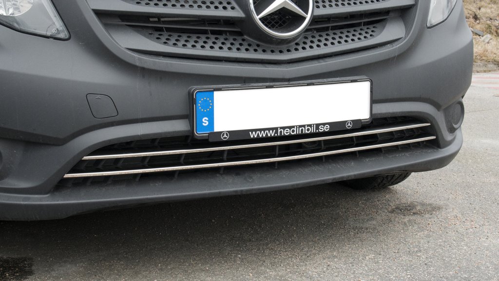 Stylish grill details for mounting in the lower grill on Mercedes Vito from 2015-2020. The grill is made of stainless steel with high gloss polished surface treatment. The highly polished surface treatment gives the grill a shiny shiny look, like chrome!