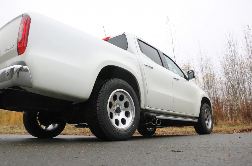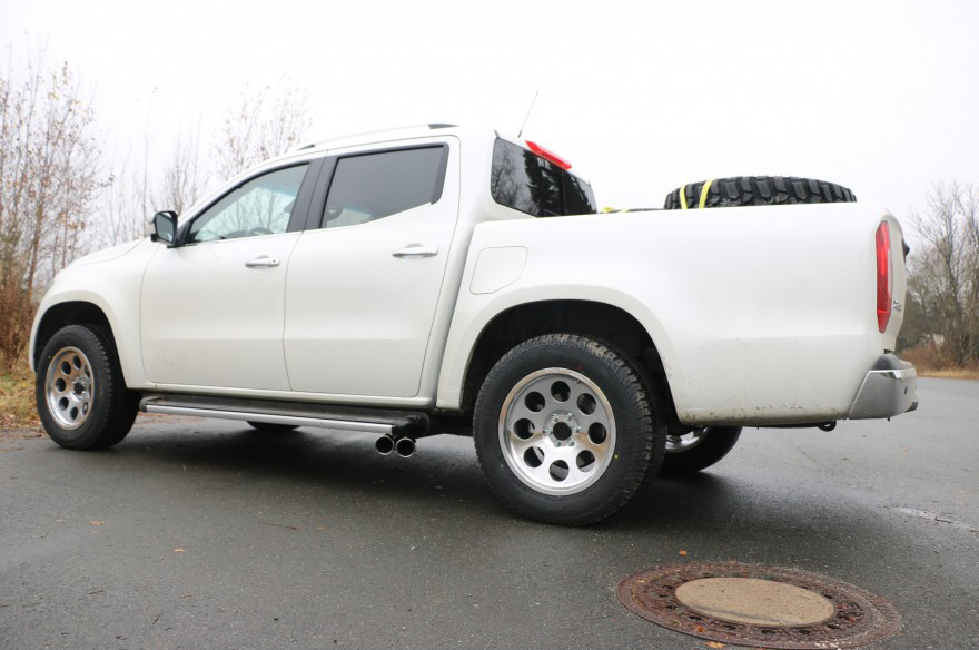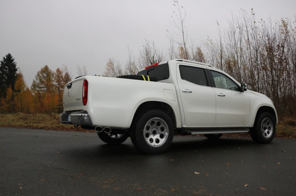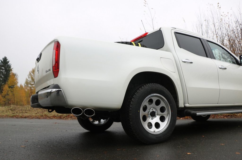 You can find similar products hereFox Sport exhaust system for Mercedes-Benz X-Class from 2017-. Exhaust system with sidepipes, i.e. double exhaust pipes on each side of the car. Includes details from catalytic converter and backwards. The exhaust system is made of stainless steel and gives your X-Class a real boost in terms of appearance.