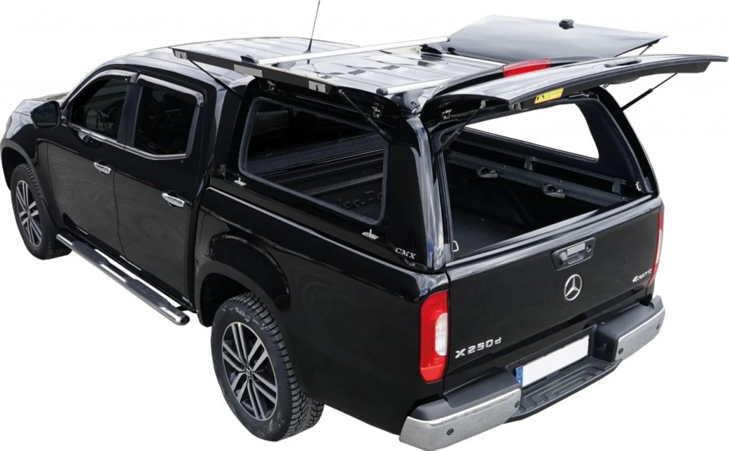 You can find similar products hereThe Alpha CMX canopy is cabin high and has openable covered side hatches. Produced for Mercedes-Benz X-class from 2017-2020.