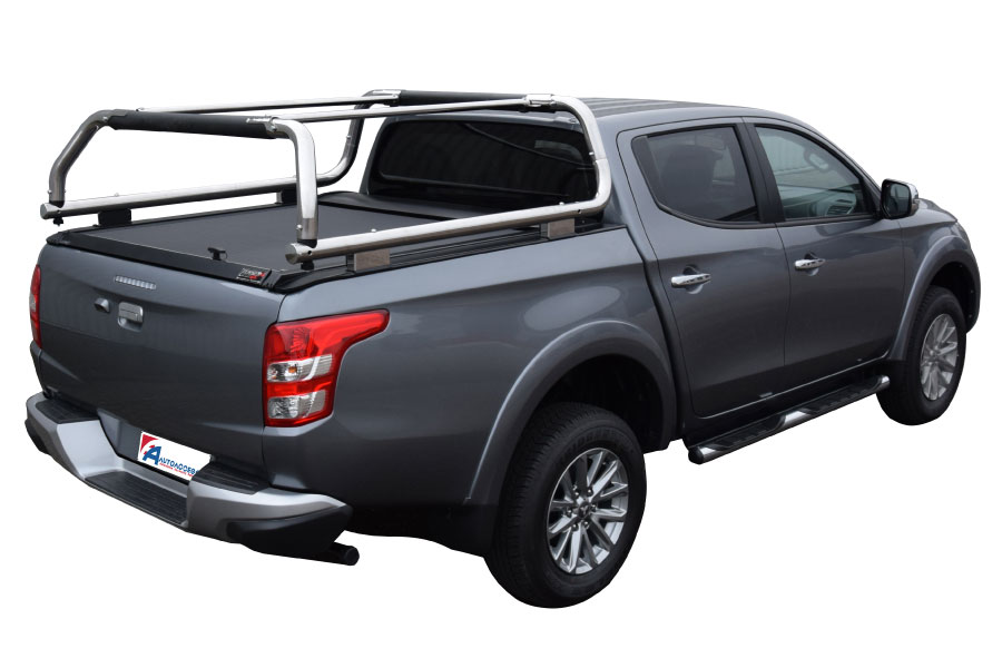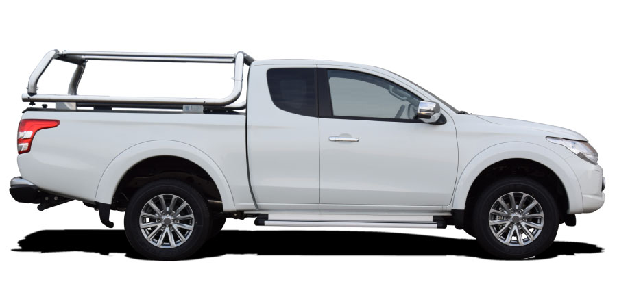 Functional flatbed frame with built-in long load rack in stainless steel, model-adapted to Mitsubishi L200 from 2016-. The flatbed frame gives you the opportunity to transport cargo in a safe way. The rack can easily be folded when not in use.