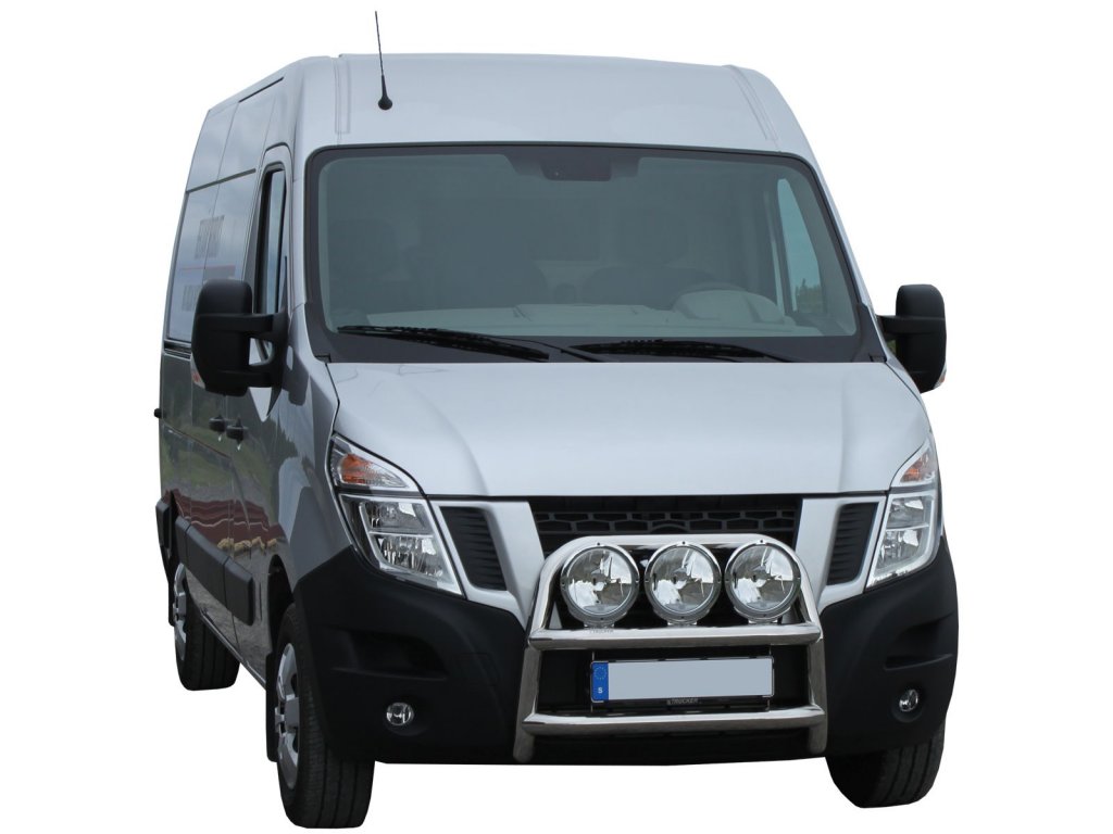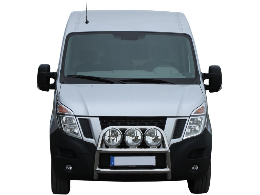 You can find similar products hereStylish high stainless steel bull bar for the Nissan NV400 from 2011- with space for three extra lights with fixed brackets. The following finishes are available for the arch: