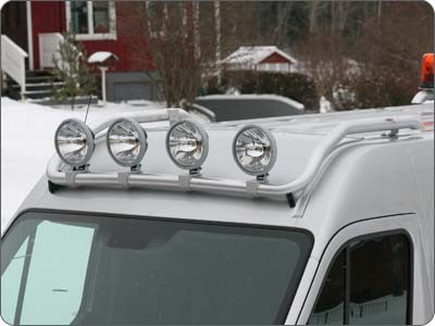 Functional front roof bar for auxiliary lights, warning lights and work lights. Made of 60 mm aluminium tube, model adapted to Nissan NV400 from 2011- with height H2. The surface treatment is natural anodizing, for a simple and easy-to-handle surface (both easy to wash off and keep clean).
