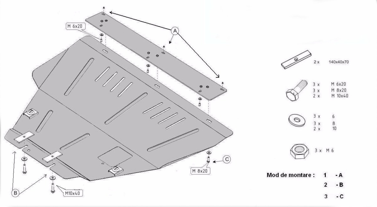 Skid Plate for engine & gearbox Designed to protect the engine and gearbox from damage. Made of 2 mm steel that is painted black for good rust protection.