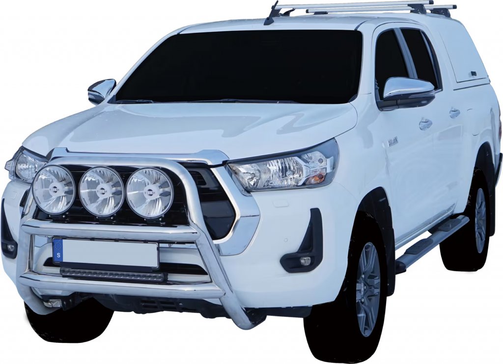 The Toyota Hilux Hero/Legend bull bar is fitted with the least possible impact on the car's bumper.