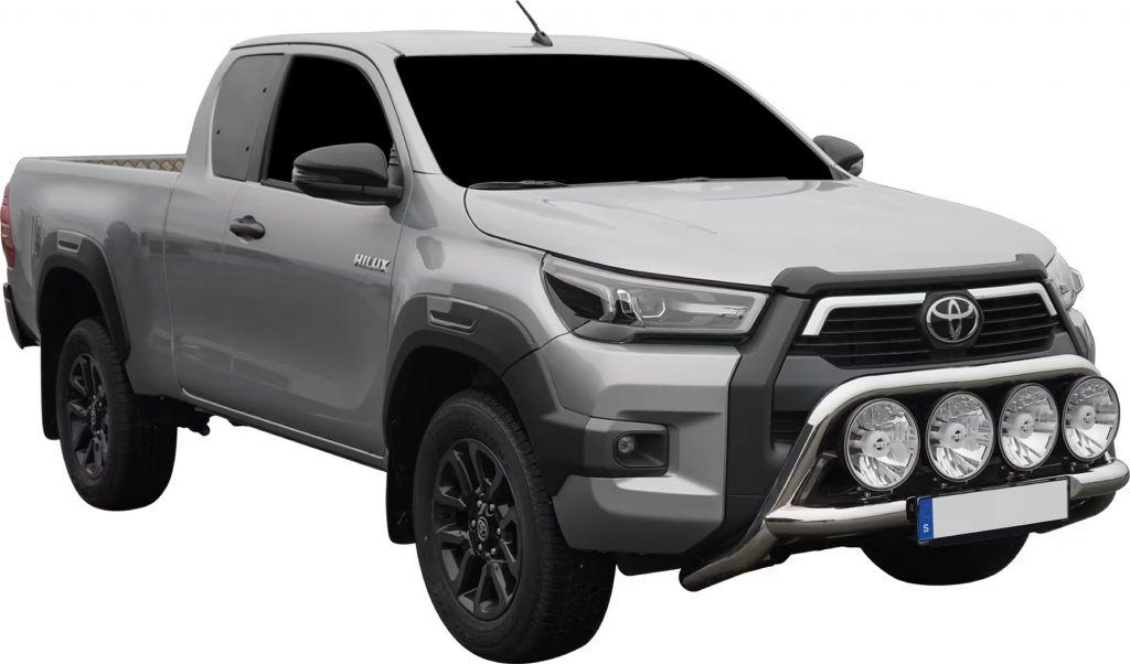 This bull bar is specifically designed for the Toyota Hilux, ensuring a tight and stylish fit that follows the natural lines of the car. The discreet yet powerful design blends perfectly with the car's exterior without giving an oversized impression. Under the horizontal cross tube, there is an integrated license plate holder bracket, making installation simple and easy without compromising on design.