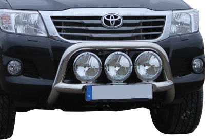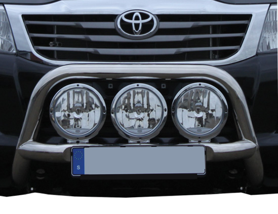 You can find similar products hereLow profile stainless steelbull bar designed for Toyota Hilux from 2006-2015. Space for three full-size auxiliary lights (max 235 mm).