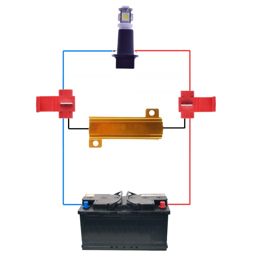 NOTE! The power resistor is connected in parallel with the lamp. So from + to -. Preferably mounted against sheet metal, as the resistor becomes very hot during operation.