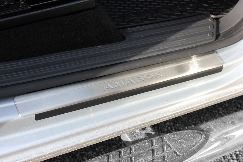 You can find similar products hereStylish functional entrance protection in stainless steel, for mounting on the plate at each door for Volkswagen Amarok from 2011-2020. The surface treatment is high-gloss polishing, which gives a clean chrome shine!