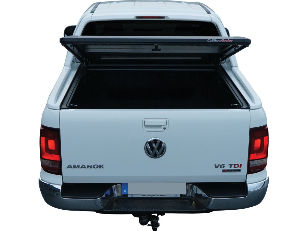 Quick release fasteners are included for easy removal of the lid. The lid is locked with a key against the rear door of your Amarok.